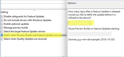 Another policy in this GPO section, called Select when Preview Builds and Feature Updates are received, allows you to defer installing a new feature update for up to 365 days after it becomes available in the general availability (GA) channel.
