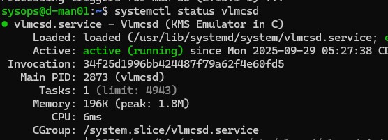 This article explains how to install a KMS server on Debian 13, on Rocky Linux 8 (a RHEL-like RPM-based distro), or run VLMCSD in a Docker container.