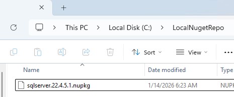 The required nupkg package should be downloaded and copied to this directory (in my example, this is sqlserver.22.4.5.1.nupkg).