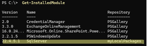 Find-Module –Name *SqlServer*| Select Name, Version, Repository