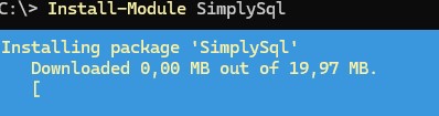 Installing a PowerShell module is straightforward if your computer has Internet access: simply run the Install-Module command and specify the required module name. For example, to install the PowerShell module for interacting with MsSQL/MariaDB databases, run the following command: