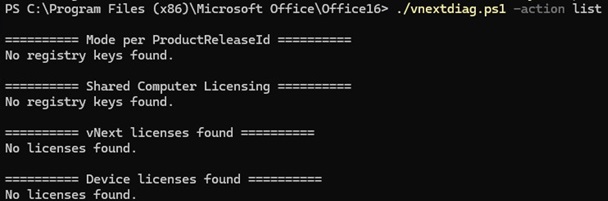 Activation rearming using ospprearm.exe doesn’t work for Office products distributed via Microsoft 365 Apps subscriptions. Use the PowerShell script vnextdiag.ps1 in the C:\Program Files\Microsoft Office\Office16 folder to check the activation status of Microsoft 365 products.