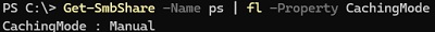 Get-SmbShare -Name MyShareDocs| fl -Property CachingMode