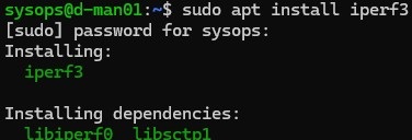 To install iperf3 on Debian/Ubuntu/Mint distros, run: