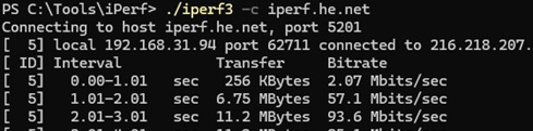 If you need to check your internet connection’s bandwidth using a speed test, you can use one of the many public iPerf servers available (for example, use this iPerf public server list). For example: