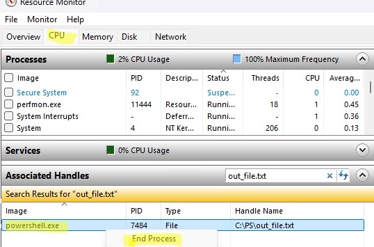 and go to the CPU tab - In the Associated Handles section, type the name of the locked file or folder in the search bar.
