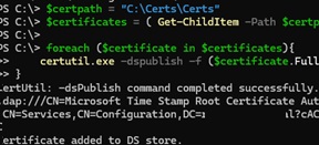 certutil.exe -dspublish -f ($certificate.FullName) RootCA