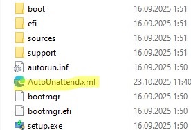 Copy the AutoUnattend.xml file to the root directory of your Windows 11 installation USB stick, or add it to your ISO image.
