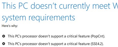 This PC's processor doesn't support a critical feature (PopCnt)This PC's processor doesn't support a critical feature (SSE4.2)